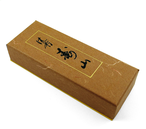 Kadzidełka zapakowano w dopracowane w każdym szczególe pudełko, oklejone złotym, czerpanym papierem.