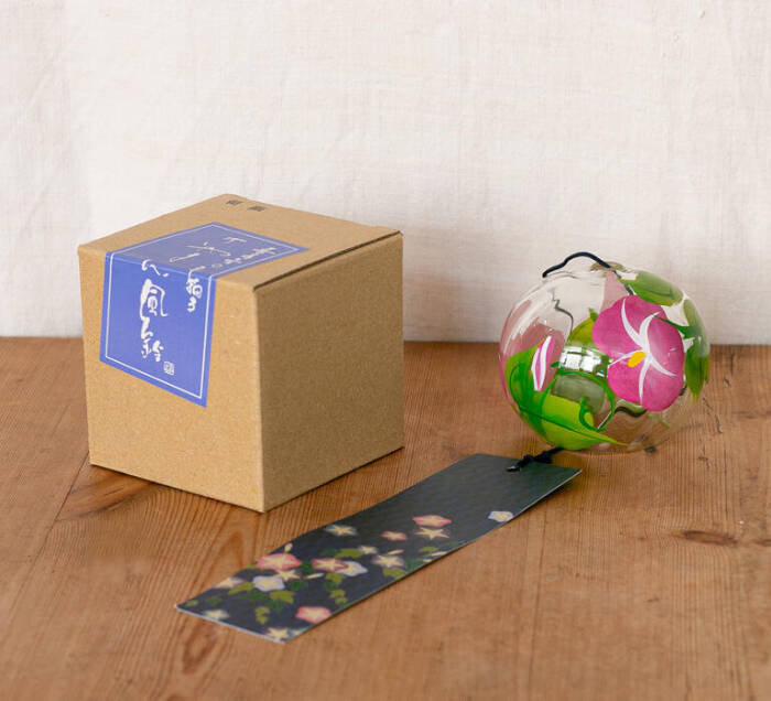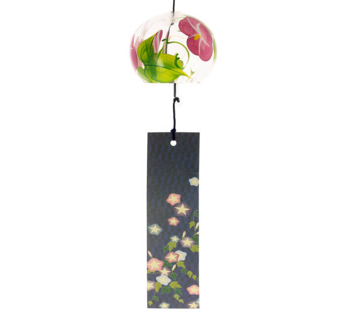 Ten dmuchany szklany furin, ręcznie wykonany i ręcznie malowany w Japonii, został zaprojektowany tak, aby szkło było grubsze przy wylocie, co poprawia jego brzmienie. Motyw przedstawia kwiat ipomei (asagao), który kwitnie latem, wnosząc do dekoracji odrobinę świeżości i lekkości.