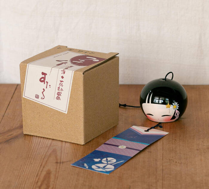 Motywy dekoracyjne malowane na tych dzwoneczkach często nawiązują do pór roku, ich ulotności i nietrwałego piękna. Ten ozdobiony jest wizerunkiem laleczki Kokeshi - symbolu delikatności japońskiego rzemiosła.