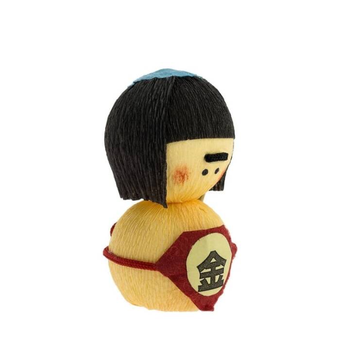 Kintaro, legendarny bohater o niezwykłej odwadze, słynie z wyjątkowej siły i waleczności. Zawsze w towarzystwie swojego topora, dorastał w górach wśród zwierząt, zanim stał się wielkim wojownikiem. Ta ręcznie wykonana japońska lalka oddaje mu hołd tradycyjnym strojem ozdobionym znakiem "złoto" (金).